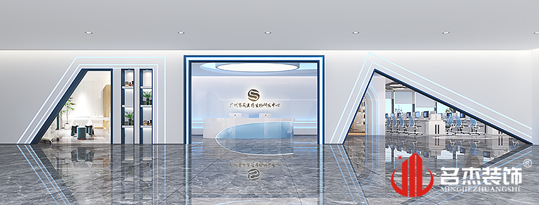 在整個(gè)的辦公室裝修設(shè)計(jì)當(dāng)中,運(yùn)用流行的霧霾藍(lán)作為整個(gè)空間的色調(diào)基準(zhǔn),同時(shí)還加入各種不規(guī)則的圖形,這個(gè)在門頭處也能體現(xiàn)出,這些圖形的加入也能讓整個(gè)空間變得更加有設(shè)計(jì)感。點(diǎn)綴空間的同時(shí),還能讓空間更加有層次感。大量的燈光引入,也使得產(chǎn)品展示變得更加有吸引力。