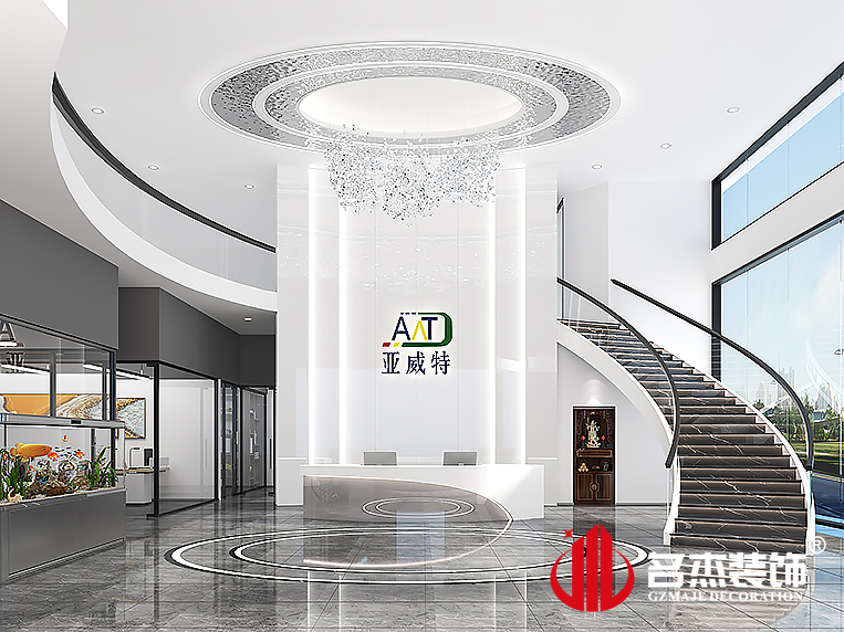 設(shè)計(jì)團(tuán)隊(duì)以現(xiàn)代簡約的設(shè)計(jì)手法,重新打造了一個(gè)新型辦公室裝修設(shè)計(jì)空間。由于該企業(yè)的辦公室裝修設(shè)計(jì)空間的樓層是足夠高,因此在前臺(tái)設(shè)計(jì)上,通過加入一個(gè)圓弧形的樓梯來連接兩個(gè)樓層,設(shè)計(jì)感滿滿的。同時(shí)采用簡約的吊頂造型,配以原木色的元素,顯示出簡約而不簡單的設(shè)計(jì)風(fēng)格。