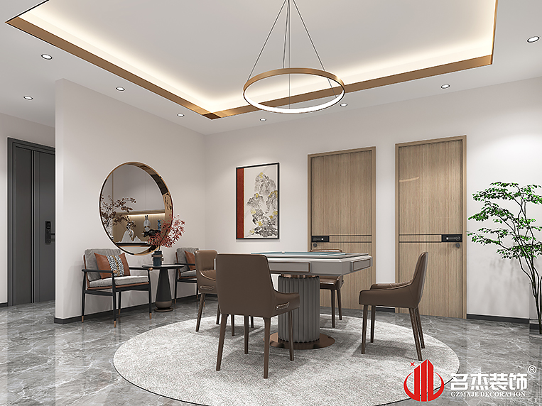 前臺區域使用有規律的線條和弧形元素進行混搭,創造出一種強烈的時尚感,而這樣方式也出現在茶室上面,通過不規則的設計手法,輔以燈帶作為裝飾點綴,展示出該企業想要突破傳統的想法。同時空間設計中,對于金色的使用,也是較為大膽的,多個區域中都使用到,運用恰到好處,讓空間有種輕奢的氛圍。