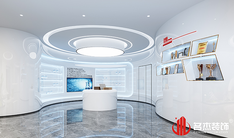 整體辦公裝修設計空間是以黑白灰作為主色調的,同時使用暖色系的燈光來營造出一種溫馨的氛圍,讓空間看起來更加有層次感。使用圓弧形吊頂則是為空間增添不少的設計感,以及不規則的燈具的加入,讓整體辦公裝修設計空間變得更加有時尚感。