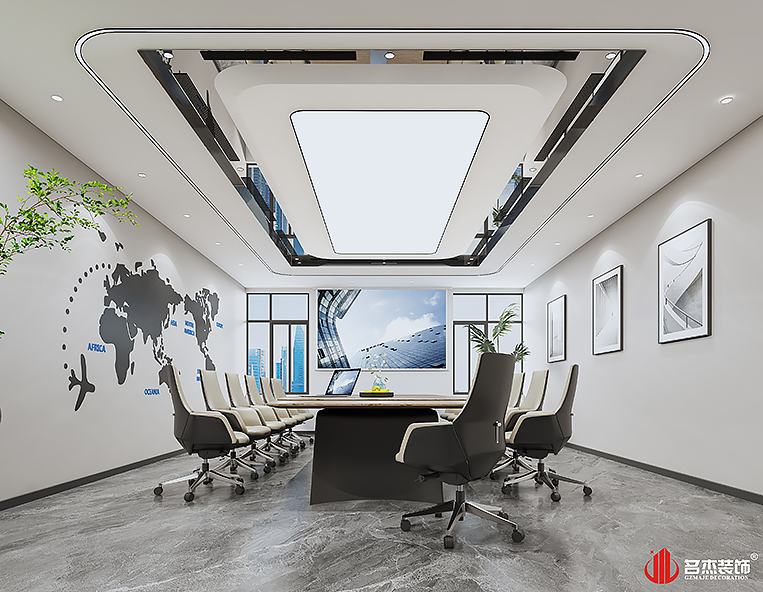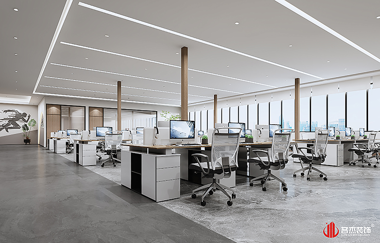 整體風格是按照時尚簡約風格來進行設計打造的,加入簡單的線條來讓空間的設計感得到加強,同時平頂的天花讓空間看起來更加清爽。時尚簡約的風格也是可以突出該企業的企業氛圍的。#廣州辦公室裝修設計#