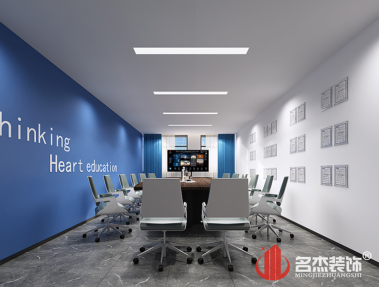 整體的辦公區(qū)域加入了藍(lán)色色調(diào)作為跳色的設(shè)計(jì)元素,也與企業(yè)LOGO的顏色相互呼應(yīng)。部分區(qū)域也采用了弧形元素來(lái)增加整體的設(shè)計(jì)感,讓整個(gè)辦公室裝修設(shè)計(jì)更加具有時(shí)尚感。