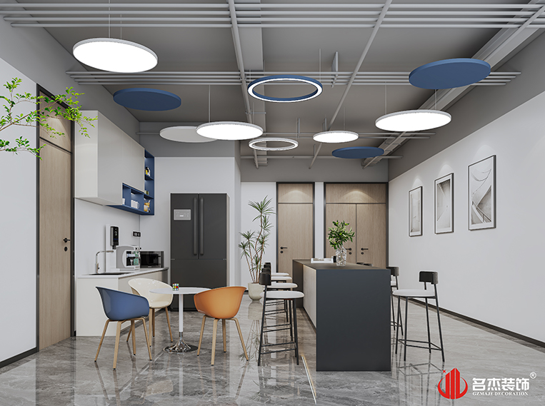 該企業(yè)是以電子、通信與自動控制技術(shù)研究、開發(fā);電子工業(yè)專用設(shè)備制造為主的信息科技型企業(yè)。設(shè)計團隊和客戶溝通后,結(jié)合客戶的需求以及行業(yè)特色,使用時尚簡約的風格來作為這次主導設(shè)計風格。將企業(yè)的logo色加入到整體設(shè)計當中,讓企業(yè)文化能夠隨處可見,同時企業(yè)logo藍色的加入也讓空間充滿了一絲科技的氛圍感。
