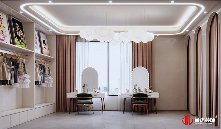 設計團隊在前臺區域使用比以往更多的圓弧形元素來作為辦公室裝修設計空間的主打設計要素,來避免孩子們碰傷的可能性,這樣的做法也是能夠讓空間的設計感更加強烈。家具的選擇上面也是選擇較為百搭的白色和原木色作為主要方向,呼應空間的同時,還能夠增加空間的設計層次感。而其他區域則是選擇較為常規的做法,通過對材質的選擇,打造出不同以往的設計風格。整體空間給人的感覺就是舒適,簡約而不簡單,同時也能夠符合兒童攝影的定位。